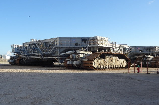 What is amazing now are the huge preparations on an unreasonable scale, everything from the rocket that is launched into space, to the engines that drive these rockets and their number, as well as the device that works as a huge carrier the size of a small house to transport the rocket from the factory to the platform that will send it into space. It is a small building that moves on four wheels that we can call wheels like a car wheel, but each wheel is the size of a very large transport vehicle that moves on tracks like tank tracks but on a size much larger than the tanks we see. These huge "wheels" are connected to each other by bridges 70 meters apart, on which the rocket is placed after it is manufactured in a building specifically for that purpose, and the huge "ship" moves carrying the rocket from the factory to its launch platform in space, which is close to the factory. This huge "ship", as I said, is about 70 meters by 70 meters, moves at a speed of 2 feet per minute, i.e. very slowly due to the huge load it carries and its large size. This huge "ship" consumes 50 gallons of gasoline per hour, which is a special type of fuel other than the regular gasoline that we use in cars.